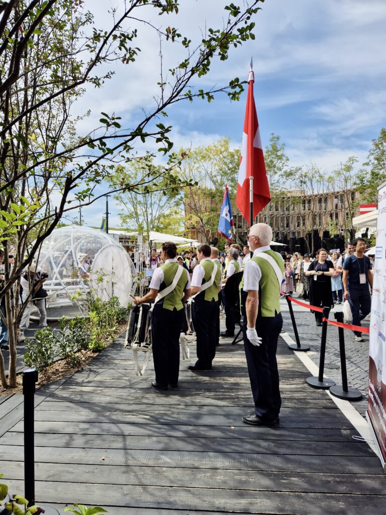 Schon die Anreise versprach Abenteuer, doch was uns vor Ort erwartete, übertraf alle Erwartungen. Mit grosser Freude durften wir im Schweizer Pavillon auftreten und so ein Stück Schweizer Kultur in die Welt hinaustragen. Die herzliche Aufnahme und die tolle Plattform, die uns geboten wurde, haben uns tief beeindruckt.